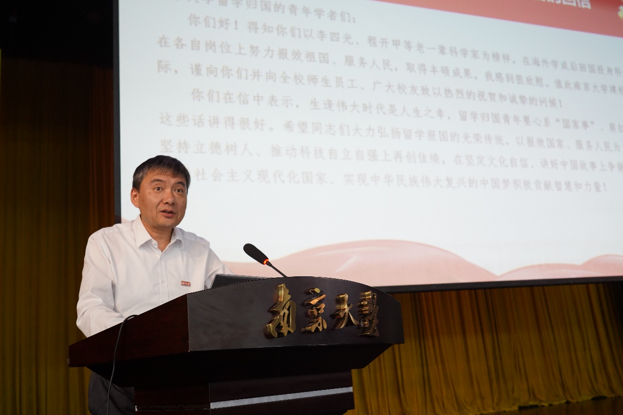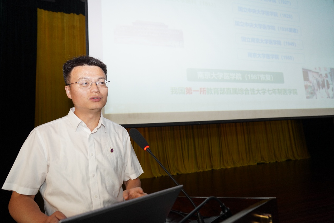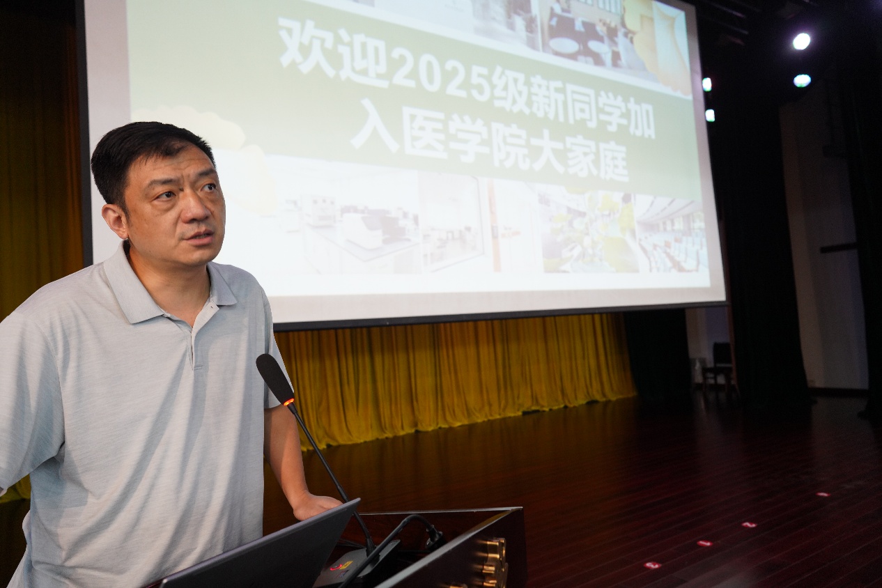 沈苏南代表医学院向全体新同学表示热烈欢迎,并以《心系“国家事”,肩扛“国家责”——做有担当的新时代医学青年》为题,为新生讲授“开学第一课”。他带领大家深入了解南京大学的悠久历史与深厚底蕴以及医学院的发展历程。他强调,在中国人民抗日战争暨世界反法西斯战争胜利80周年之际,全体医学生要牢记习近平总书记给南京大学留学归国青年学者的重要回信中的殷切嘱托,将个人理想融入国家需求,学好专业知识,积极进取、奋发有为,持续推进“奋进行动”,着力攻克医学领域的“卡脖子”难题。最后,他祝愿大家在紧张而充实的研究生阶段学有所成、收获满满。