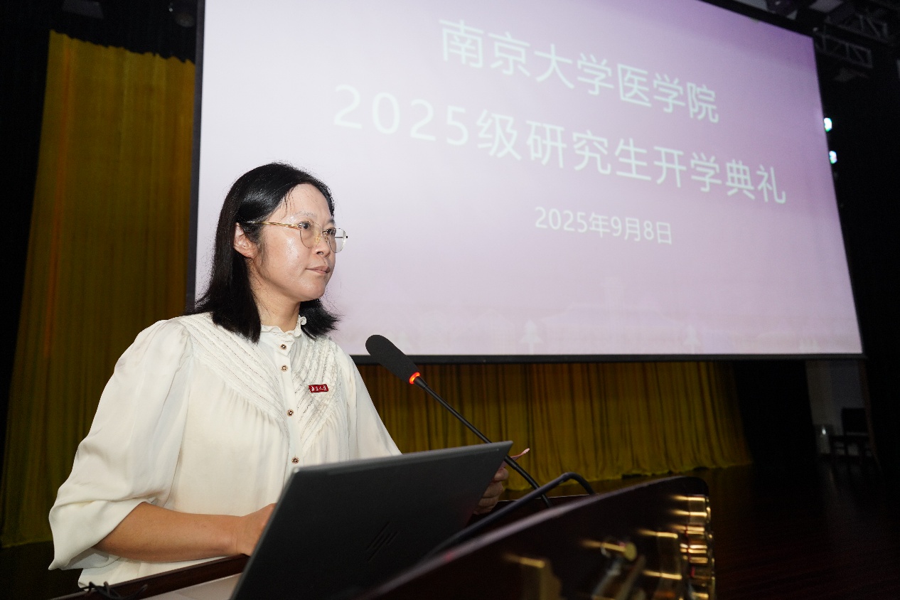9月8日,南京大学医学院2025级研究生开学典礼暨入学教育大会在鼓楼校区大礼堂举行。医学院党委书记沈苏南,副院长王宏伟、王婷婷、吴锦慧,附属鼓楼医院副院长周敏,附属口腔医院副院长吴文蕾,附属鼓楼医院教育处处长赵晓智,附属金陵医院(东部战区总医院)教学办主任顾怀敏,附属口腔医院教育科科长谢思静等出席典礼。典礼由医学院党委副书记王阿妮主持。