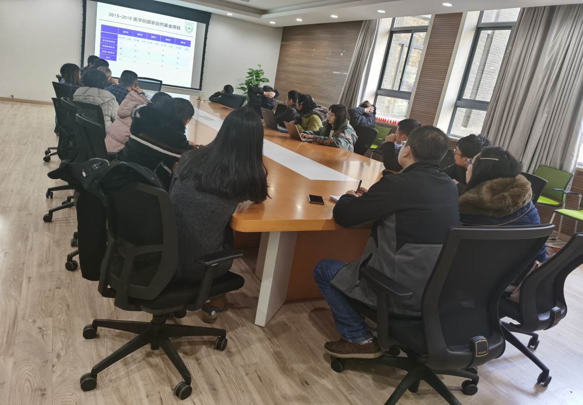 会议开始,王宏伟副院长对医学院以及附属医院近几年的国家自然科学基金项目申报的情况进行梳理与回顾,对2020年医学院申报国家自然科学基金项目给予鼓励、寄予希望。