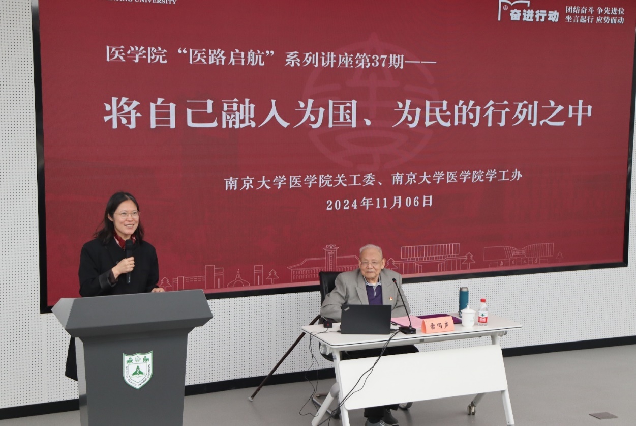 2024116日,南京大学医学院“医路启航”系列第37期讲座在鼓楼校区医学院基础医学科研中心报告厅成功举办,此次讲座荣幸邀请到原国立中央大学医学院校友、原南京市卫生局副局长,南京大学医学院校友会名誉会长雷同声先生,为2024级全体本科生带来了一场题为“将自己融入为国、为民的行列之中”的精彩报告。医学院党委副书记、关心下一代工作委员会副主任王阿妮、关心下一代工作委员会副主任宋小苏以及相关老师出席了此次活动。报告会由王阿妮主持。