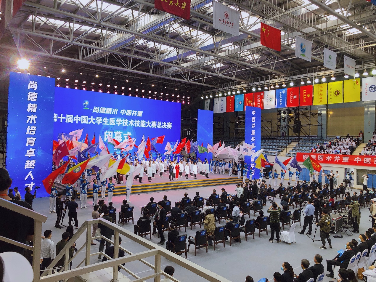 中国大学生医学技术技能大赛,是独具中国特色的高端医学教育赛事,全面贯彻全国教育大会、全国卫生与健康大会及全国中医药大会精神,深入推进医学教育综合改革,创新医学实践教学体系,全面提升医学生综合素质和技术技能水平。此次比赛共吸引全国共211所高校的497支代表队参赛,覆盖国内近91%的医学院校。经过前期预选赛和分区赛的层层选拔,最终共有42所高校的临床医学五年制代表队晋级全国总决赛,百余名医学生同台比武、切磋技艺,充分展现新时代医学生德医双修、仁心仁术的青春风采。通过分站式和赛道式的比赛相结合,采用仿真模拟教学模型、标准化病人和动态题卡衔接,高度贴近真实临床情景,全面评判学生的临床思维和理论实践结合能力,不仅考察学生的基本技能,更检验学生的临床决策能力、团队合作、医患沟通、心理素质等。