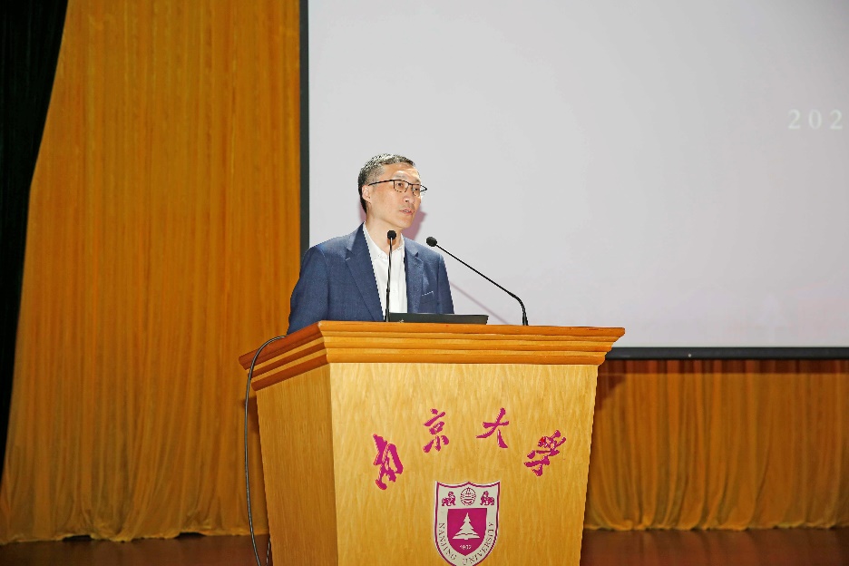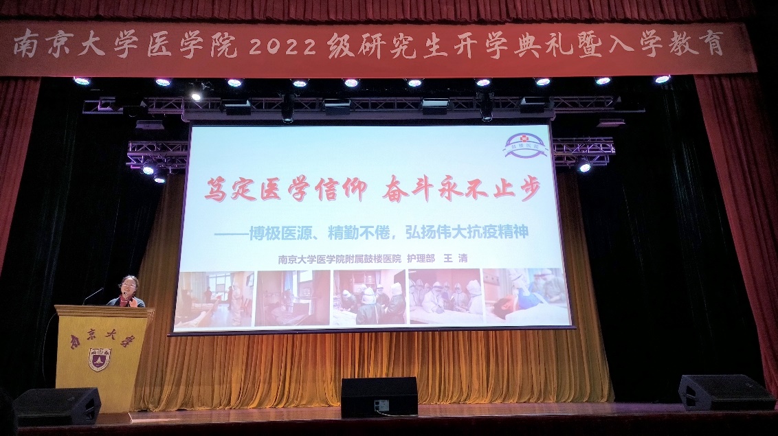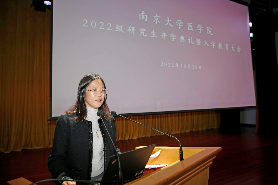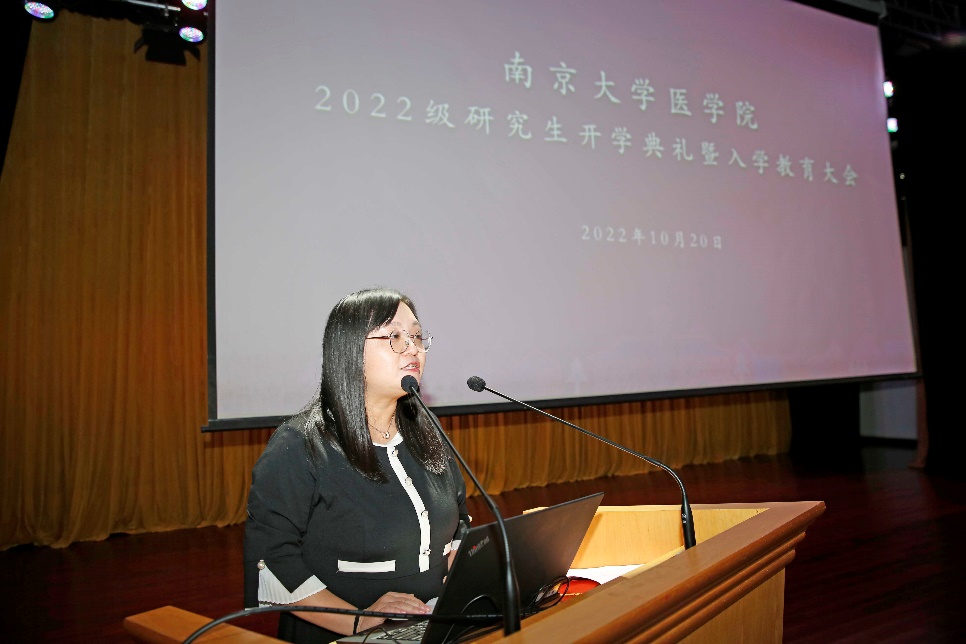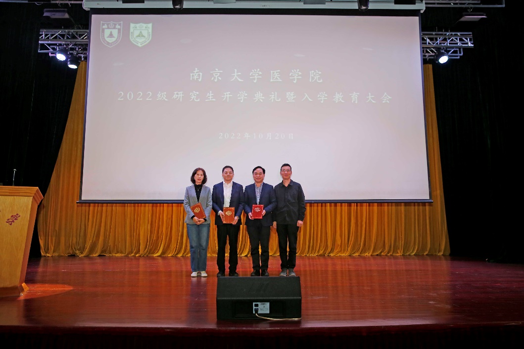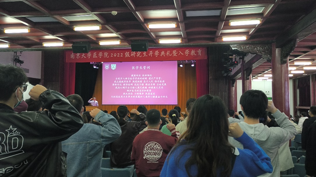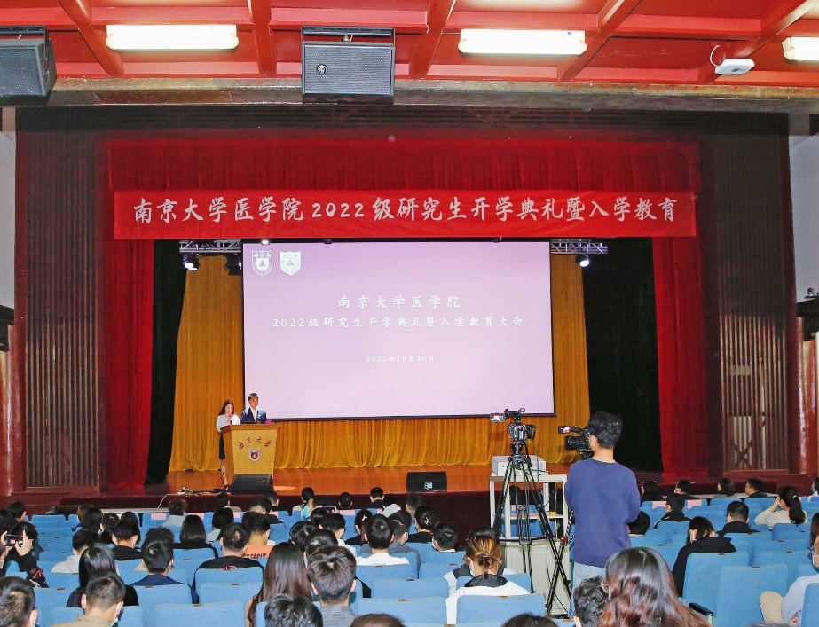金秋送爽,丹桂飘香。今年恰逢南京大学建校120周年,生逢盛世,幸甚至哉,百廿回首,再谱新篇。为深入学习党的二十大报告和习近平总书记回信精神,勉励同学践行光荣使命、致力崇高事业,2022年10月20日南京大学医学院在鼓楼校区大礼堂成功举办2022级研究生开学典礼暨入学教育大会。南京大学党委常委、副校长、医学院院长张峻峰,医学院党委书记沈苏南,医学院党委副书记、副院长蒋青,副院长王宏伟、王婷婷,附属鼓楼医院教育处处长赵晓智,附属金陵医院教学办主任王玲玲,附属口腔医院科教科科长谢思静,医学院教师代表出席本次活动。全体研究生新生线上线下同步观看。典礼由医学院党委副书记王阿妮主持。