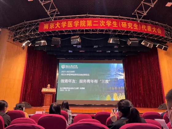 医学院学生会执行主席刘婉敏、研究生会执行主席陈泰格分别向大会作《2021-2022学年南京大学医学院学生会(研究生会)工作报告》。
