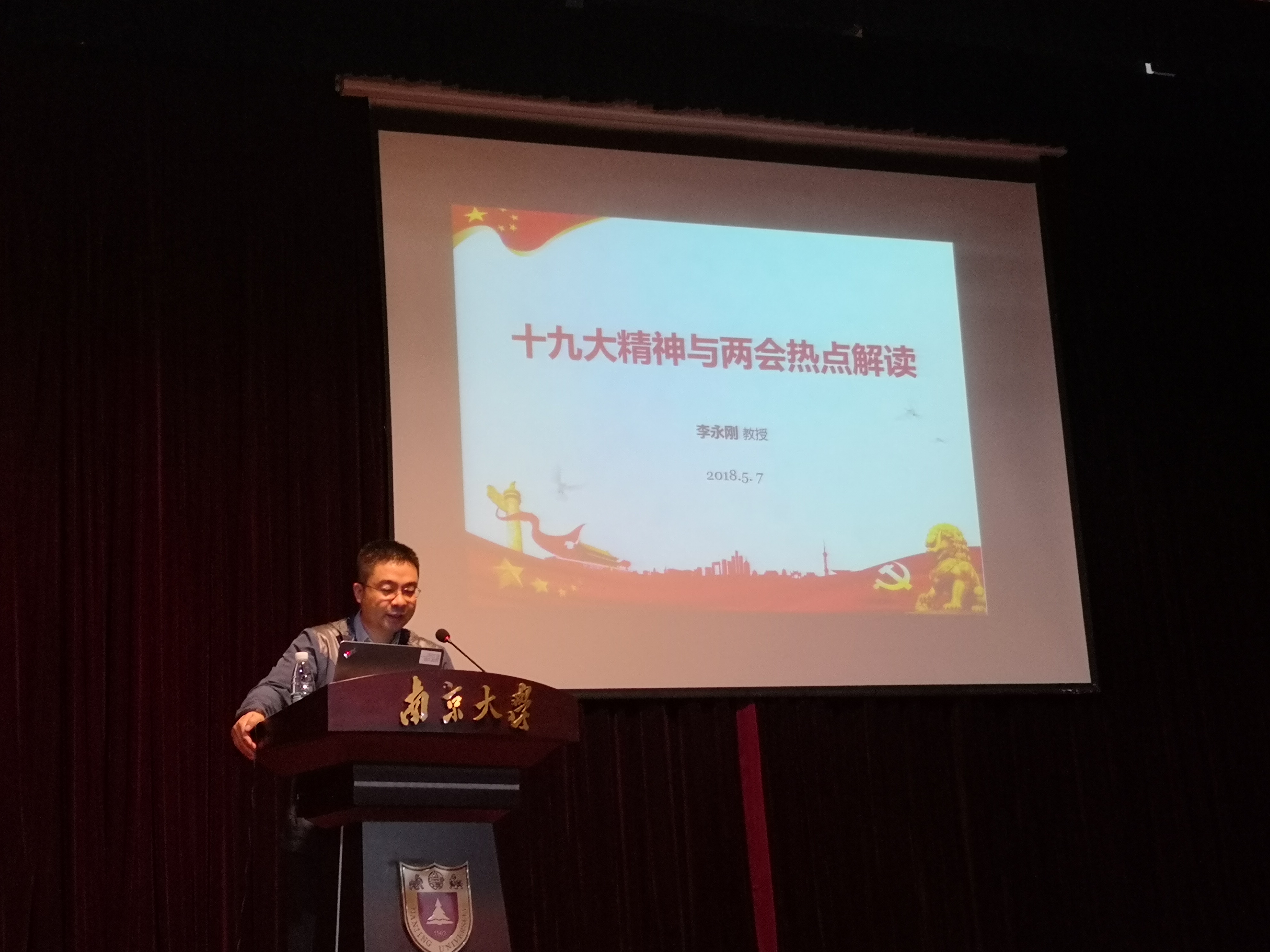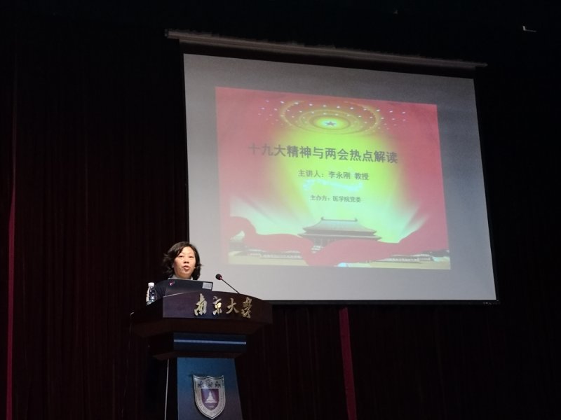 主题党日活动是医学院党委的传统项目,一直以来在传递党组织精神与提高医学院党组织凝聚力等方面起到重要作用。本学期的主题党日活动于5月7日在鼓楼校区科技馆一楼报告厅举办,由政府管理学院李永刚教授为全体党员作“十九大精神与两会热点解读”主题报告。活动由医学院党委韩晓冬书记主持,医学院全体党员参与活动。