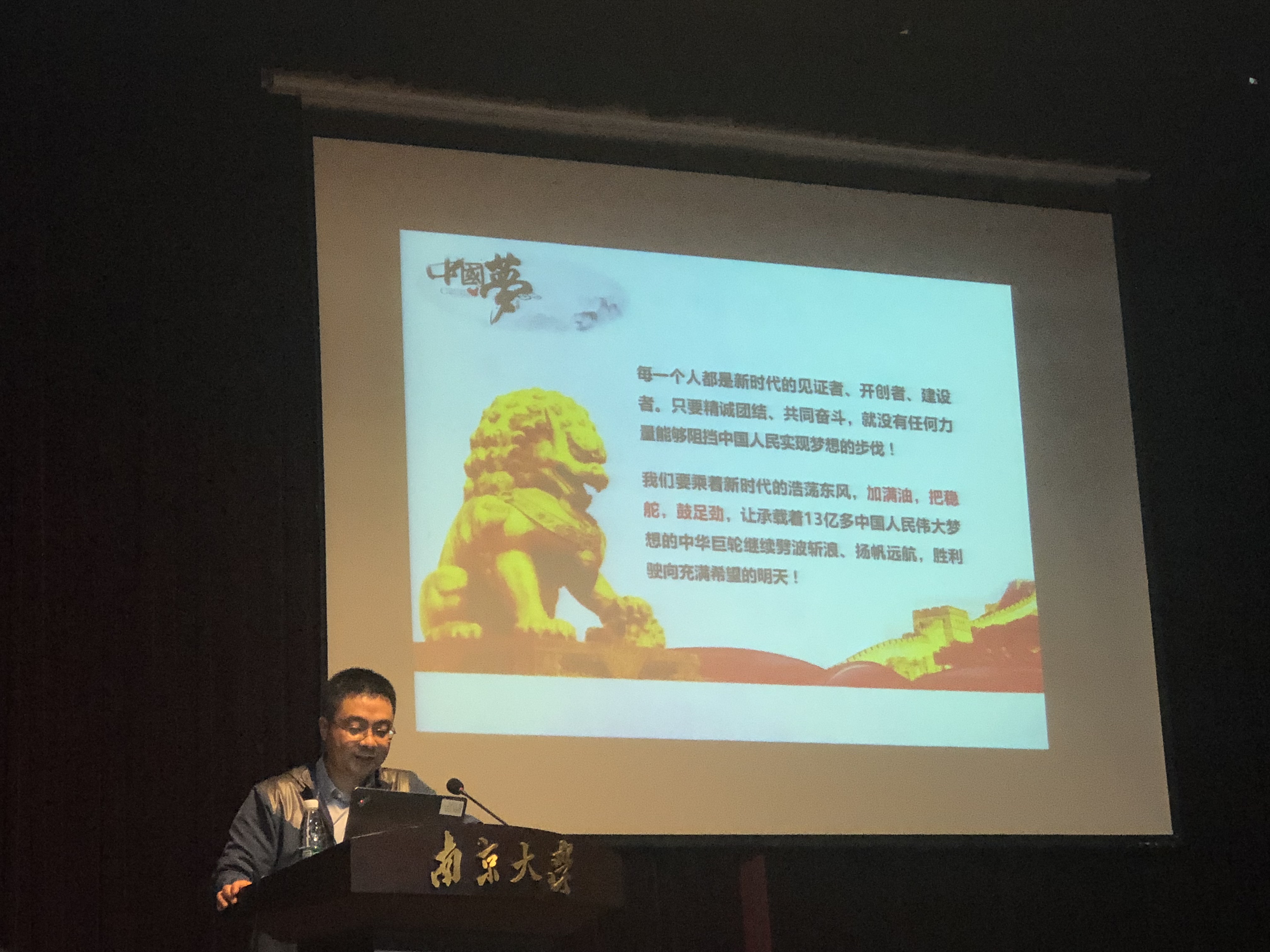最后,李永刚教授以习总书记的话作为报告的总结:每一个人都是新时代的见证者、开创者、建设者。只要精诚团结、共同奋斗,就没有任何力量能够阻挡中国人民实现梦想的步伐。
