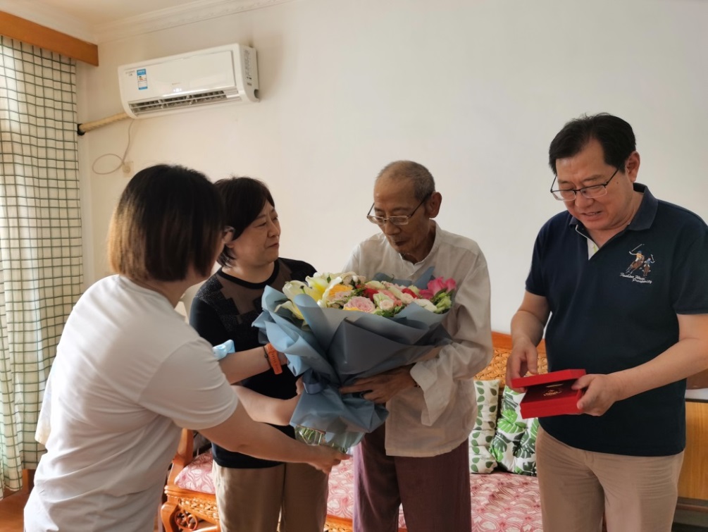 6月24日上午,医学院党委书记韩晓冬同志一行走访慰问老党员并颁发“光荣在党50年”纪念章。