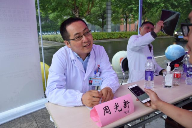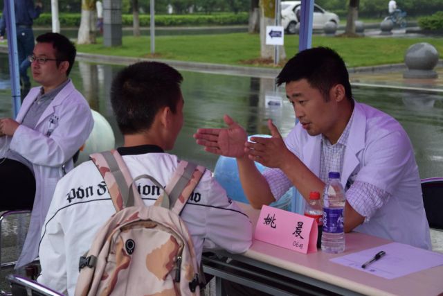来自骨伤科的姚晨学长今年是第一次参加义诊。他认为义诊活动非常好,既给学校的教职工提供便利专业的咨询,也能对南京大学医学院进行很好的宣传。在坐诊过程中,他主要为年轻人解答了髌骨外翻、髋关节发育不好的问题并向老年人解答了一些退行性病变问题。
