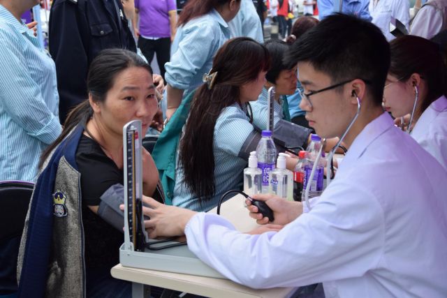 现场还有来自医学院大四的学长和学姐们组成的分诊与测血压小分队。他们没想到今天会有那么多师生员工来测血压,“作为医学生第一次感受到了帮助别人的快感,也第一次被那么多人信任着,感觉很开心!”