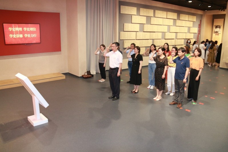 为庆祝中国共产党成立100周年,深入贯彻落实习近平总书记关于传承红色基因、发扬革命精神的重要论述精神,扎实开展党史学习教育,2021年6月27日,医学院党委理论学习中心组与学科办党支部前往盐城新四军重建军部纪念馆,联合开展“传承铁军精神、汲取奋进力量”主题党日活动。