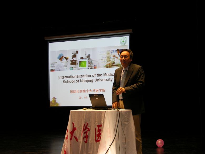 各位领导和教授先后分别介绍了作为医学院附属医院的鼓楼医院、市口腔医学院,作为临床学院的军区总院的概况、历史、优势和教学相长的特色等等,并对新生提出了谆谆教诲,鼓励他们将来成为一名治病救人、医德高尚、受人尊敬的医学人才,同学们反响热烈。许哲学长和沈洁同学也从学长的角度分享了自己的经历和体会,令人深受启发,现场掌声不断。新生王毓佳也谈了自己这两个月来的各种体会与感受,并代表各位新生向师长们立志。最后,高千院长向同学们展示了医学院美好的发展前景,以及与大家息息相关的教学改革方面的一些措施,并提出自己对新生的殷切期望。