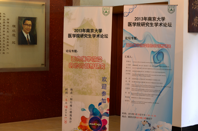2013年5月18日 下午1:30,南京大学知行楼二楼报告厅济济一堂,2013年南京大学医学院研究生学术论坛“面向医学前沿的协同创新研究”在这里召开,南京大学研究生院研究生工作部副主任陈静老师、瑞典哥德堡大学医学院副教授邹翔、医学院和附院的老师及同学们参加了论坛。论坛由医学院党委书记韩晓冬老师主持。论坛首先通过征稿,征集大会发言论坛,获得医学院研究生同学积极响应,经医学院初评,评选出乔海石等12名同学参加现场汇报。