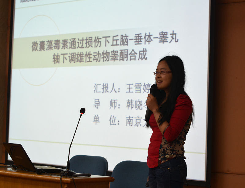 接下来由遴选出来的十二名同学汇报自己的科研论文情况,由评审专家分别提问点评和打分,并与现场同学们进行交流。王雪婷同学关于“微囊藻毒素(MC-LR)通过损伤下丘脑-垂体-睾丸轴下调雄性动物睾酮合成”的汇报,展现其广泛的阅读面,实验设计严密,方法先进,所用资料、实验结果、计算数据的可靠,汇报表达情况简明扼要、重点突出,获得评委的青睐,获得论坛汇报一等奖。郭文文、汪秀星获得二等奖,沈洁、周波、乔海石获得三等奖。同学们的汇报均内容充实、实验设计及数据严谨,展现了医学院研究生良好地科研素养和创新能力。
