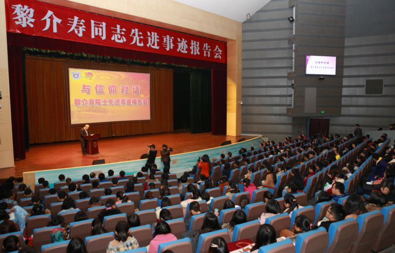 2013年12月6日,由中共中央宣传部、国家卫生和计划生育委员会、总政治部和中国工程院主办的中国工程院院士、南京大学医学院附属金陵医院副院长、南京军区南京总医院副院长、全军普通外科研究所所长黎介寿同志先进事迹报告会,在仙林校区敬文活动中心恩玲剧场举行。报告会由南京大学党委书记洪银兴主持。南京大学党政联席会成员,校教育实践活动领导小组办公室成员、教育实践活动督导组成员,校机关科级以上干部,校各院系学生工作办公室主任、辅导员,校各基层团委书记,校学生会、研究生会主席及各院系学生会、研究生会主席以及师生代表共一千余人聆听了报告。