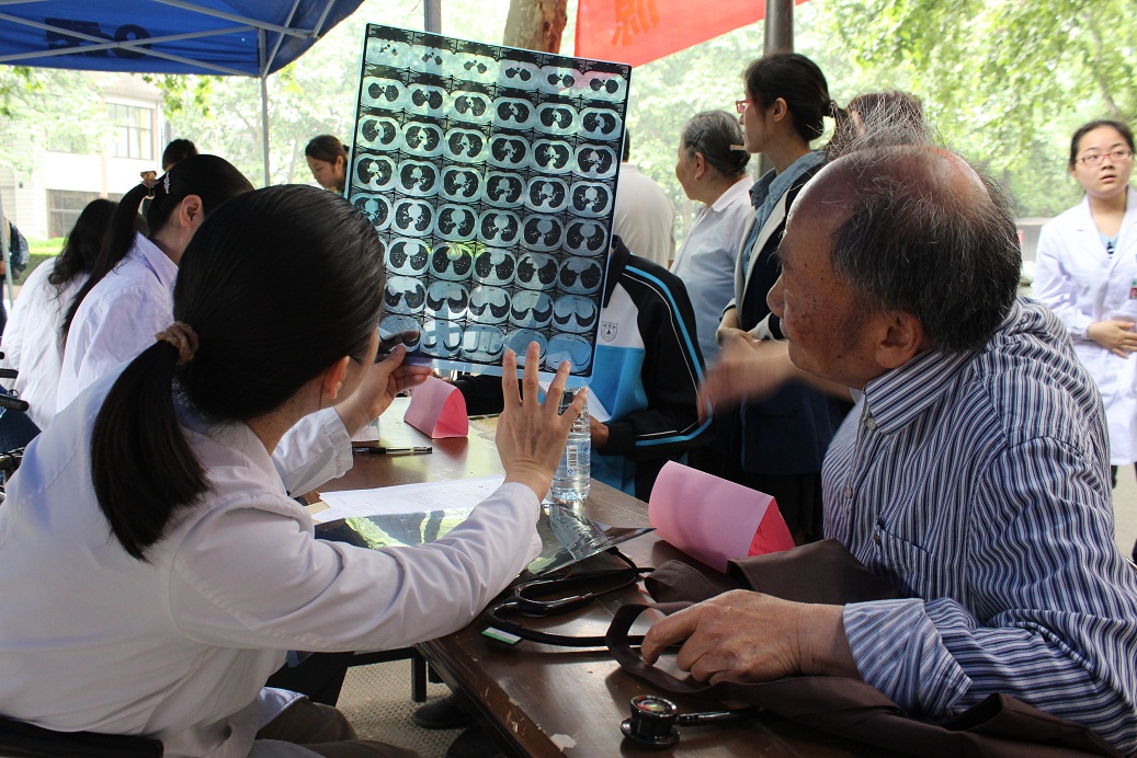 活动得到了老师和同学们的热烈欢迎和积极响应,众多师生和退休老教师前来咨询,很多老教师们说,平时医院病人多,没时间和机会跟医生们仔细沟通询问,有这样的机会非常难得。很多同学们也来到现场,咨询平时遇到的一些健康问题。校友们仔细询问他们的病史,查看检查报告,并为师生们做检查,耐心地讲解疾病防治和健康生活注意事项。