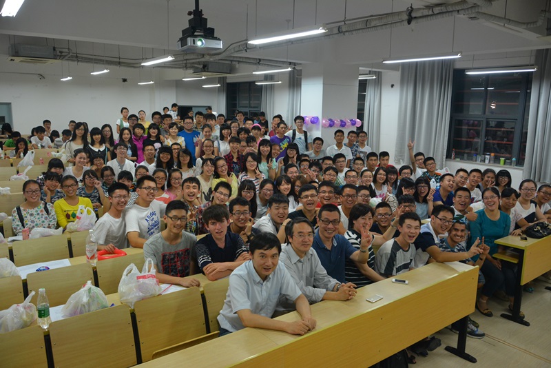 9月4日晚上6:30分,在医学院党委书记韩晓冬老师的带领下,医学院部分院领导和老师们来到仙林校区看望刚入学的2014级本科新生,并带来中秋节日的问候。党委书记韩晓冬教授代表医学院对新同学们表示热烈的欢迎。副院长蒋青教授建议大家学好英语,勤奋努力。院长助理沈苏南老师希望大家能够享受大学里五彩缤纷的生活,并逐步成长为一名成熟独立的人。院长助理邢峥老师建议同学们给家人打个问候电话,并转达医学院对家长们的问候。党委副书记王阿妮老师、院办主任应锋老师也分别对新生表示了热烈的欢迎、关怀和希望。接着,各位老师为新生分发院里慰问大家的月饼、饮料等食品,将见面会的气氛推向了高潮。