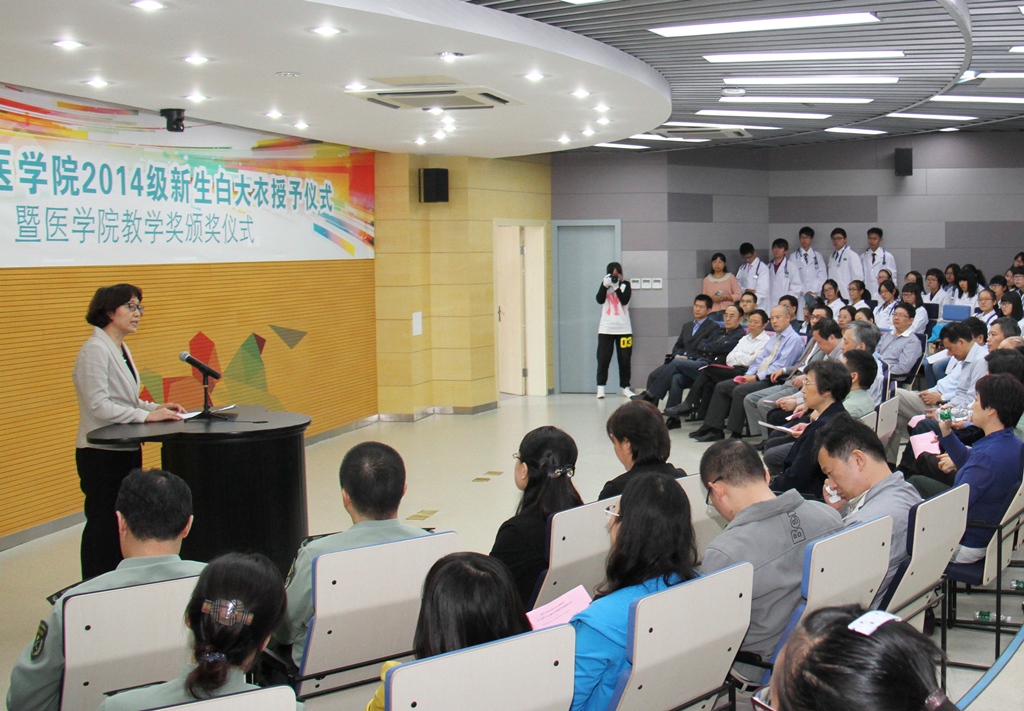 10月9日下午,医学院在基础医学教学中心五楼报告厅隆重举行2014级医学生白大衣授予仪式暨医学院教学奖颁奖仪式。南京大学党委书记张异宾教授、医学院院长刘志红院士及医学院和附属医院相关领导和老师出席活动,医学院党委书记韩晓冬教授主持仪式。