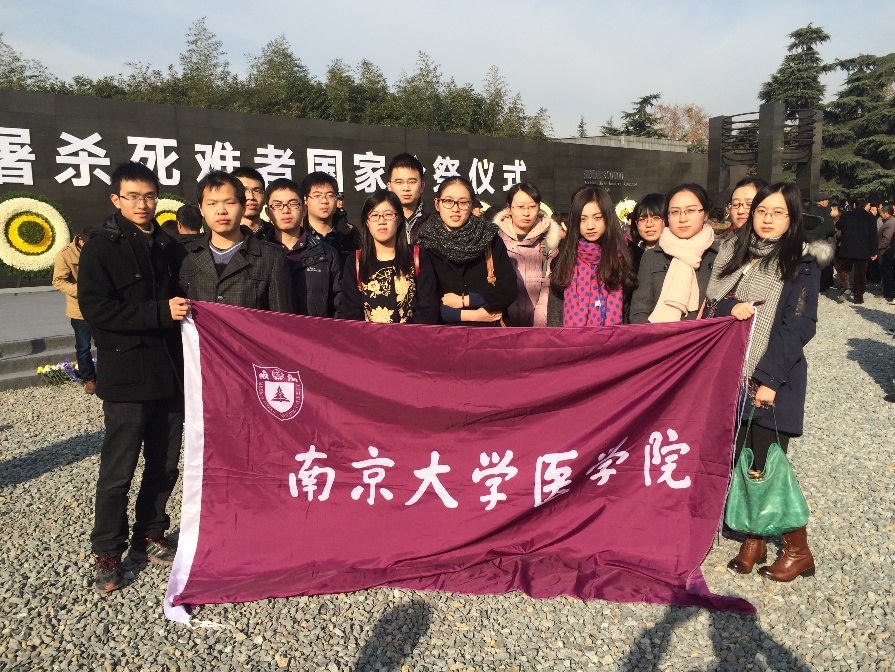 2014年12月13日是首个国家公祭日,这一天山川寂寥,举国同哀。为悼念南京大屠杀死难者,揭露日本侵略者的战争罪行,缅怀烈士先人,南京大学医学院党委开展以“铭记历史,珍爱和平”为主题的系列党日活动,化哀伤为奋发向上,保卫祖国和平的强大动力。