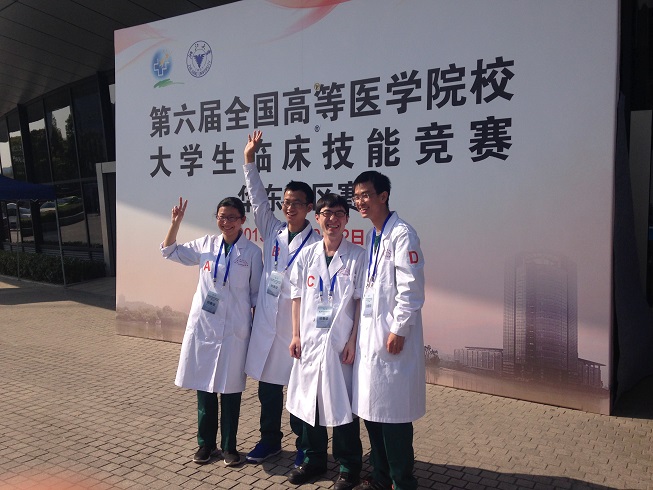 南京大学医学院由张思盼、秦海翔、朱悉煜、葛晓龙4名学生组成团队,院长助理沈苏南老师带队参加了本届大学生临床技能竞赛。比赛中同学们沉着冷静,通力合作,越战越勇,一路过关斩将,凭借扎实的理论知识、娴熟的技能操作、出色的临场表现,勇夺华东分区赛特等奖,获得下个月代表华东赛区参加全国总决赛的资格,取得了突破性的成绩,充分展示了南大医学院学生高超的临床技能操作水平、良好的团队合作精神和杰出综合素养,给比赛评委和其他参赛医学院校留下深刻的印象。