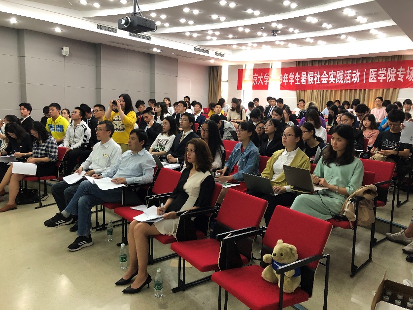 2019年6月1日上午9:00,医学院“2019暑期社会实践立项答辩”在医学院二楼报告厅举行。南京大学副校长、医学院院长张峻峰、医学院副院长沈苏南、院党委副书记以及学院学生工作办公室全体老师参加了立项答辩。活动由王阿妮老师主持。