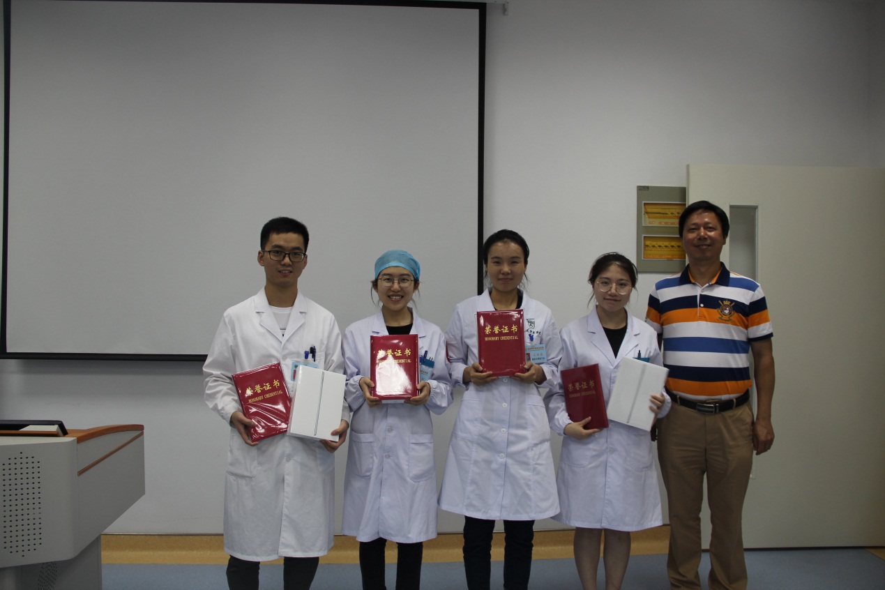 参加大赛的选手为医学院2014级、2015级学生,以2人一组团队形式进行,共有23组同学参与比赛。6月14日晚,参赛选手进行了笔试、临床思维及辅助检查的考试。6月20日下午进行了技能操作比赛,分为初赛和决赛。初赛按抽签顺序进行内科、外科、妇科、急诊等共计5站的操作比赛,每组比赛严格计时8分钟,每站结束后轮换,直到所有组均完成5站的操作项目。初赛决出前三名进入决赛,决赛采用综合模拟人的考核形式,比赛时间为10分钟。经过激烈的比赛和评委们严格考核打分,大赛评选出特等奖1组、一等奖2组、二等奖3组、三等奖4组。刘迅志和沈嘉薇两名同学以熟练沉稳的操作表现、良好的医学人文精神和默契的团队配合摘得特等奖荣誉。吕中阳、宋雪如、陈海婷和王欣玥四名同学获得一等奖荣誉。郭梦笛、刘嘉欣、赵晶、张雨婷、郑露和付念念六名同学获得二等奖荣誉。关雅洁、姚维和、徐子岩、时静妍、董威辰、傅凯、秦山梅、陈露八名同学获得三等奖荣誉。