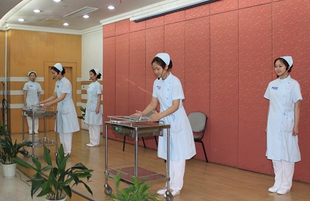 在动员会上,护理人员现场演示护理服务规范和礼仪,门诊部邵倩护士长结合日常工作案例,进行《医院服务礼仪》现场培训,内容生动、精彩,使大家深受启发和教育,引起大家共鸣。