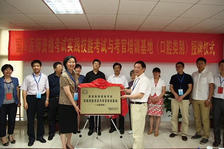 7月6日上午,我院顺利通过国家医学考试中心评估,被批准为国家医师资格考试实践技能考试与考官培训基地(口腔类别)。评估反馈会和授牌仪式在我院14楼会议室举行,国家医学考试中心、国家卫计委医政医管局医疗机构处、省卫生厅、市卫生局和南京大学领导出席了会议。