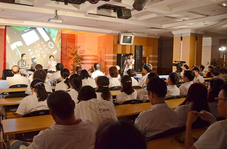 胡勤刚院长在致辞中说,南京市口腔医院创建于1947年,66年来始终弘扬以病人为中心、以爱心为主题、以人性化服务为宗旨,尊重科学、关爱生命的医院文化。此次交流会,选出了在历次表彰活动中屡次获奖、受到群众一致好评的八位同志,通过短片采访、现场问答、互动交流等方式,让大家真切感受到他们工作生活中令人感动的点点滴滴。