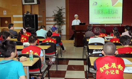 7月26日上午,我院举办“美丽牙齿在行动” 暑期正畸夏令营活动。本次活动是我院与《南京晨报》联合开展暑期口腔健康夏令营活动的主要内容之一,来自《南京晨报》的小记者以及陪同家长共100余人参加了活动。