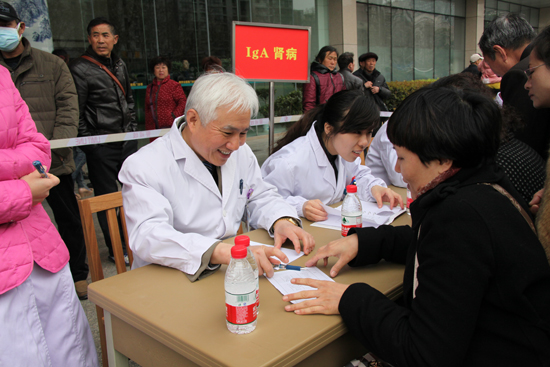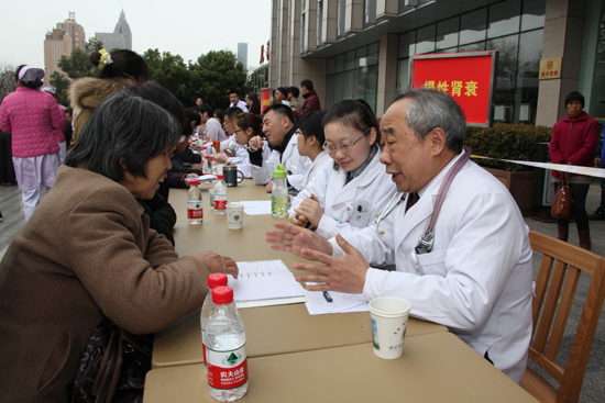 作为中华医学会肾脏病学分会主任委员单位,承办此次义诊活动的全军肾脏病研究所出动了200多名医护人员,精英荟萃、专家云集。其中,中华医学会肾脏病学分会青委会副主委、江苏省肾脏病学会副主委等博硕士导师和享受国务院特殊津贴的顶类专家就多达20名,全国政协委员、医院副院长、中国工程院刘志红院士更是专程从北京“两会”现场赶回。据统计,整个活动持续2个半小时,共为3000余名患者提供免费诊疗服务。
