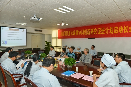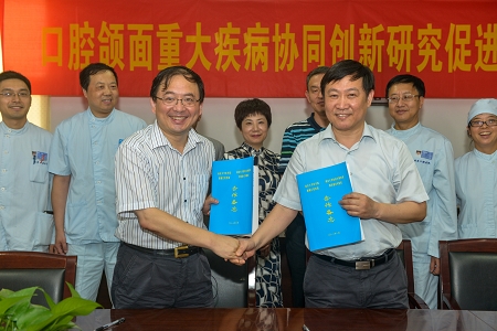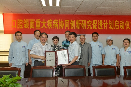 胡勤刚院长首先介绍了口腔颌面部重大疾病协同创新研究促进计划,介绍了我院与南京大学医药生物技术国家重点实验室的合作过程。在过去的十五年内,我院与南京大学医药生物技术国家重点实验室紧密合作,成效显著。双方合作开展了口腔遗传疾病、口腔恶性肿瘤等领域的研究,共同署名发表了SCI文章30余篇,其中包括高影响因子的学术期刊如Int J Nanomedicine,Mol Cell Proteomics,J Biol Chem等,合作申请了国家级、省级课题20余项,共同培养了研究生20余名。医院将以启动口腔颌面部重大疾病协同创新研究促进计划为契机,进一步加强与南京大学医药生物技术国家重点实验室的合作,不断提升医院的科研水平和实力。