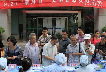 9月18日,我院举办了“9.20爱牙日”专家义诊活动,口腔修复、牙体牙髓病科、口腔颌面外科等9名专家参加义诊,为150余位市民进行了免费口腔咨询和检查,并向群众发放了口腔健康宣传资料以及牙膏、假牙清洁剂等口腔保健用品,活动现场温馨而热烈,受到前来咨询市民的广泛好评,江苏城市频道、南京教科频道等媒体进行了现场报道。