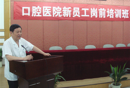 王磊书记、周楠副书记讲授医德医风教育内容,着重强调了良好的医风医德和和谐医患关系的重要性,要求每一位医务工作者要用微笑与热忱和病人沟通,成为一名专心的倾听者、细心的观察者、敏锐的交谈者和有效的诊治者,把“以人为本、以病人为中心”的服务理念落实到行动上。王文梅副院长针对口腔医院“大门诊、小病房”,门诊病人多、诊疗环节多等特点,对新员工提出做好医疗工作的总体要求,强调不仅要具备精湛的医疗技术,还要平等对待不同患者,要有爱心、耐心和责任心。孙卫斌副院长向新员工介绍了医院的发展历程、现状,医院文化建设以及依托南京大学平台、走国际化发展之路的美好未来。相关职能科室负责人对规章制度、岗位要求以及专业知识等进行培训。