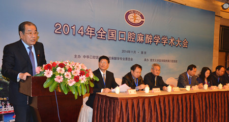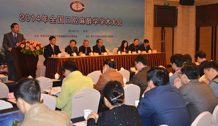 11月7日~9日,由中华口腔医学会口腔麻醉学专业委员会主办,南京大学医学院附属口腔医院承办的2014年全国口腔麻醉学学术大会在宁召开。中华口腔医学会会长王兴教授、中华口腔医学会口腔麻醉学专业委员会主任委员徐礼鲜教授以及江苏省口腔医学会会长、南京大学医学院附属口腔医院院长胡勤刚教授分别致辞。中华口腔医学会口腔麻醉学专业委员会前任主任委员朱也森教授、候任主任委员姜虹教授以及副主任委员刘可斌教授、刘瑞昌教授出席会议并在主席台就坐。开幕式由中华口腔医学会口腔麻醉学专业委员会副主任委员、南京大学医学院附属口腔医院李刚教授主持。大会参会代表205人,其中台湾代表10人。