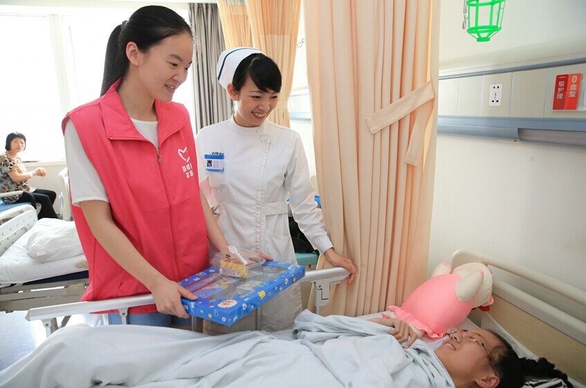 “六·一”国际儿童节是孩子们共同的节日。为了让很多躺在病床上的孩子也能欢度“六·一”儿童节,我院组织志愿者为脊柱外科的住院小患者送上节日的祝福。