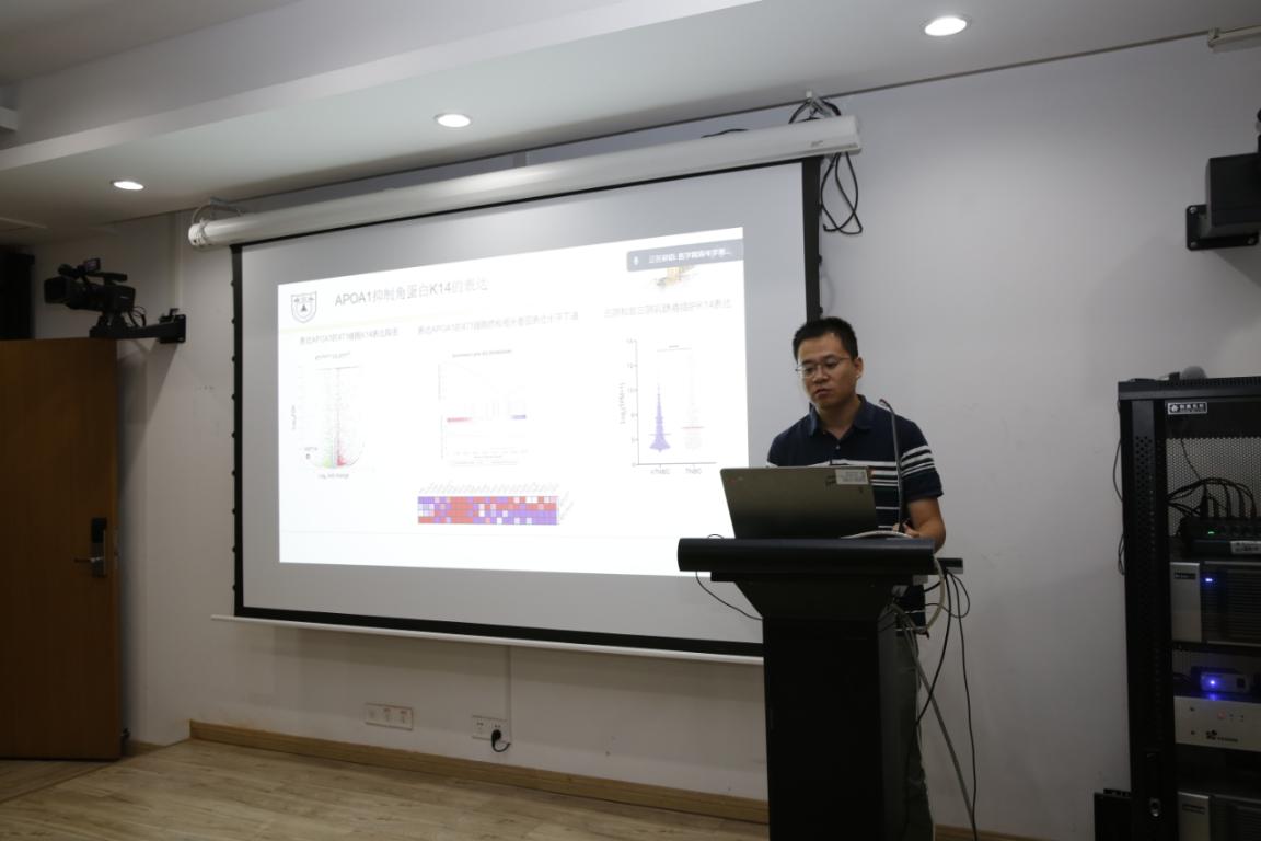 15位参会的青年教师都做了充分的准备,依次上台进行科研工作汇报。赵越老师就她上半年的科研工作成果作了内容丰富的学术汇报,主要围绕肝脏脂肪代谢协同导致肥胖人群代谢功能异常的机制研究这一主题与在场的师生进行交流。