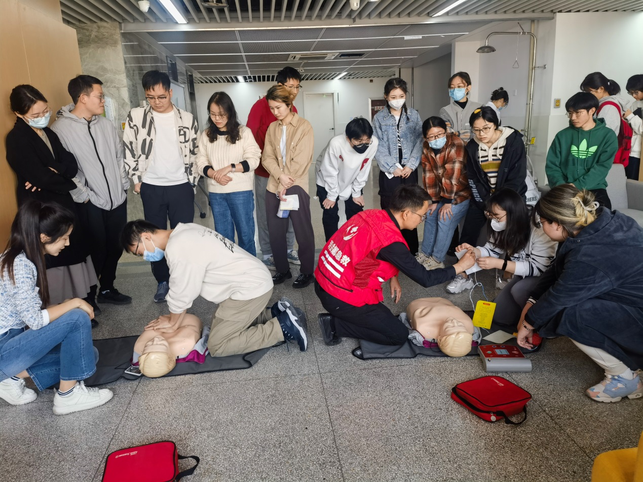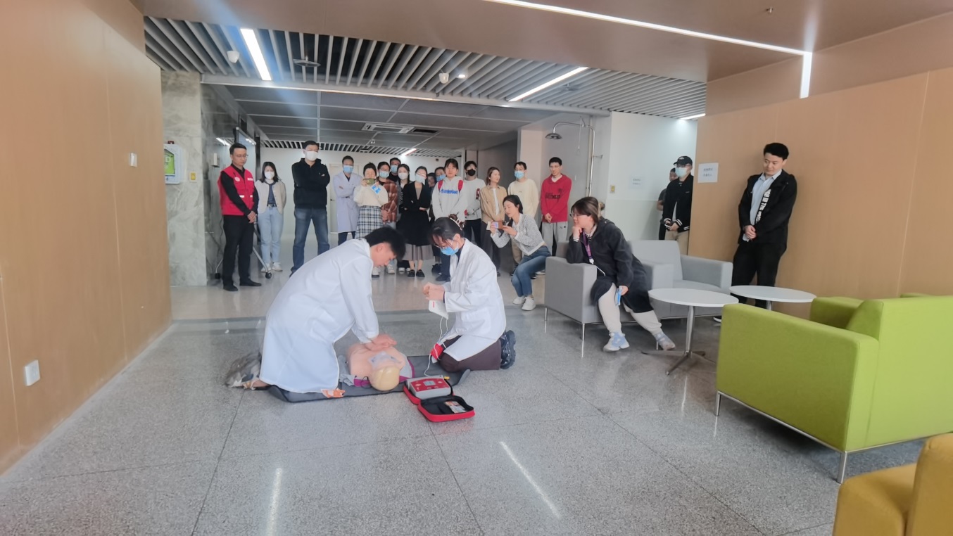 “心跳骤停急救”演练通过情景模拟和现场授课,对师生们进行了心肺复苏和AED的使用培训,师生们体验热情高涨。同时告知师生,医学院在化学楼一楼和八楼配备2台AED,可用于处理此类突发情况。