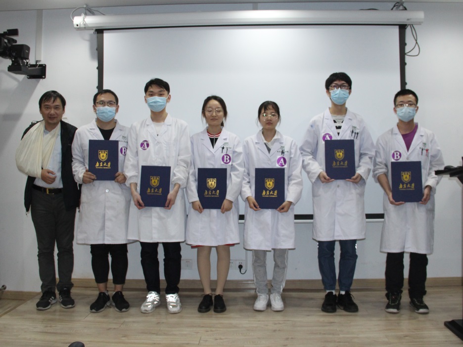 本次大赛的裁判由我校各附属医院的临床专家担任。经过紧张激烈的角逐,评选出特等奖1组,一等奖2组、二等奖3组、三等奖4组。刘斌和李至彦两名同学以熟练、精确的操作技能、良好的团队风貌获得评委一致好评,摘得特等奖荣誉。