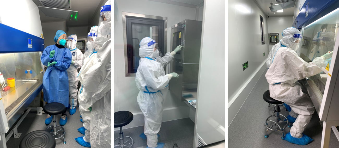 虚拟情境与探究性学习相结合。在课程开始前期,沈苏南教授和窦环老师多次开展研讨,充分利用P2生物安全等级的方舱实验室,科学合理安排教学内容,精准设计实践实验环节。在教学过程中,教师们通过提前撰写好的虚拟情境剧本,组织医学院本科生开展一场临“危”受命的虚拟情境实训,带领他们进入P2实验室真实场景中进行不同角色扮演,要求学生们自主设计、实操实验、探索研究问题的答案。