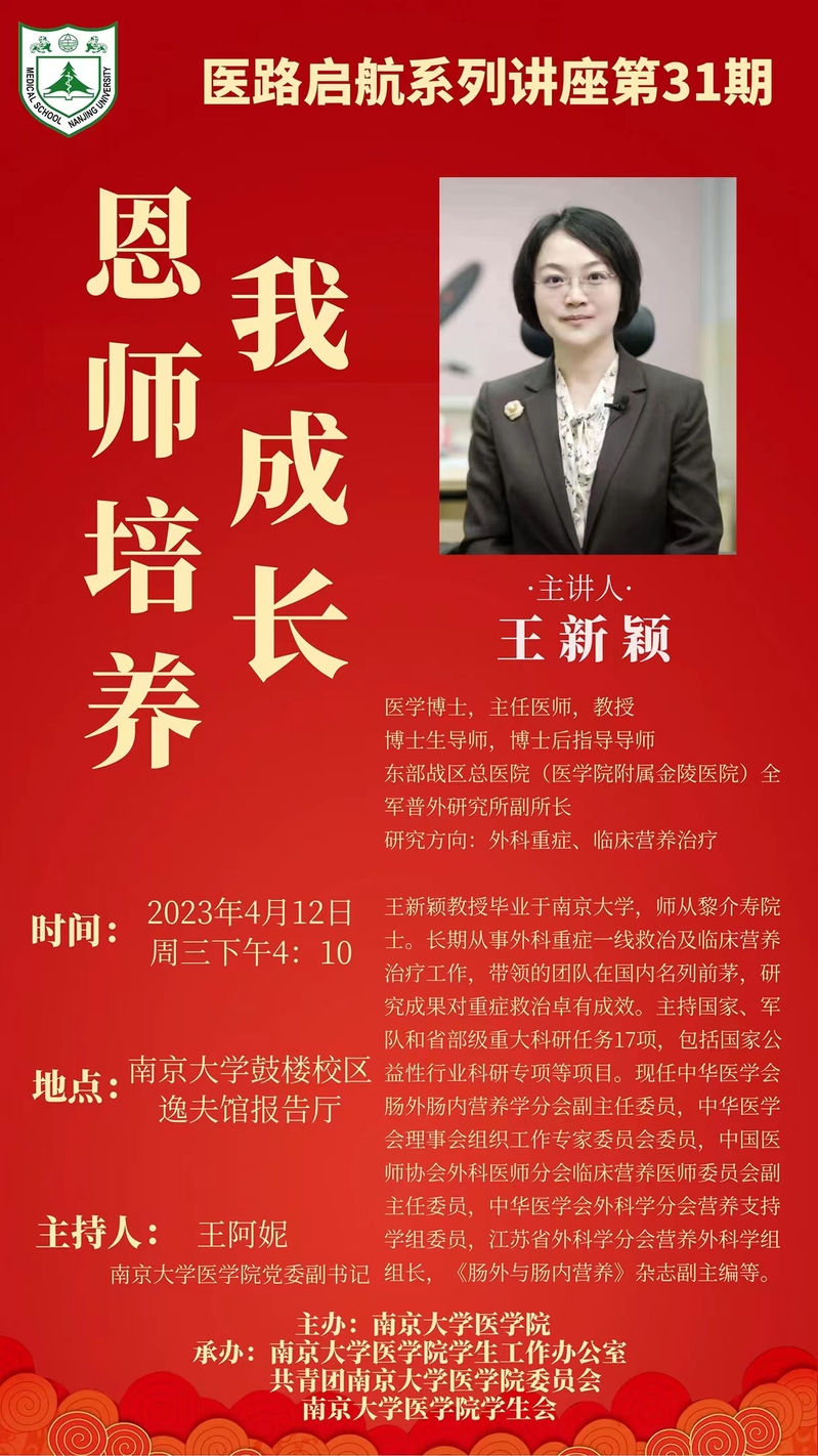 【讲座预告】医路启航系列讲座第31期——王新颖:恩师培养我成长