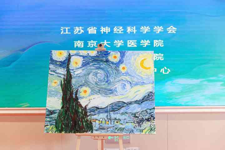 活动的一大亮点,是一场寓意深远的艺术接力创作盛典。参与活动的各方以梵高的经典作品《星空》为灵感源泉,展开了一场多元力量汇聚的艺术协作。前期,来自南京大学医学院学生与与医学院附属金陵医院神经内科、神经外科、放射科及康复科组成的帕金森病MDT团队和一线医护人员及携手合作,共同描绘出一幅以《星空》为参照的作品雏形,细腻地勾勒出画面的基本结构,并倾情投入初步的色彩铺陈。尽管他们都是第一次接触油画艺术,没有任何绘画基础,却毫不拘泥于自身的局限,尽全力挖掘并释放出潜能。这不仅彰显了他们在专业领域之外的社会责任感与无私付出,更借助油画艺术这一极具感染力的形式,传达了他们对帕金森病患者深切的关注与关爱之情。