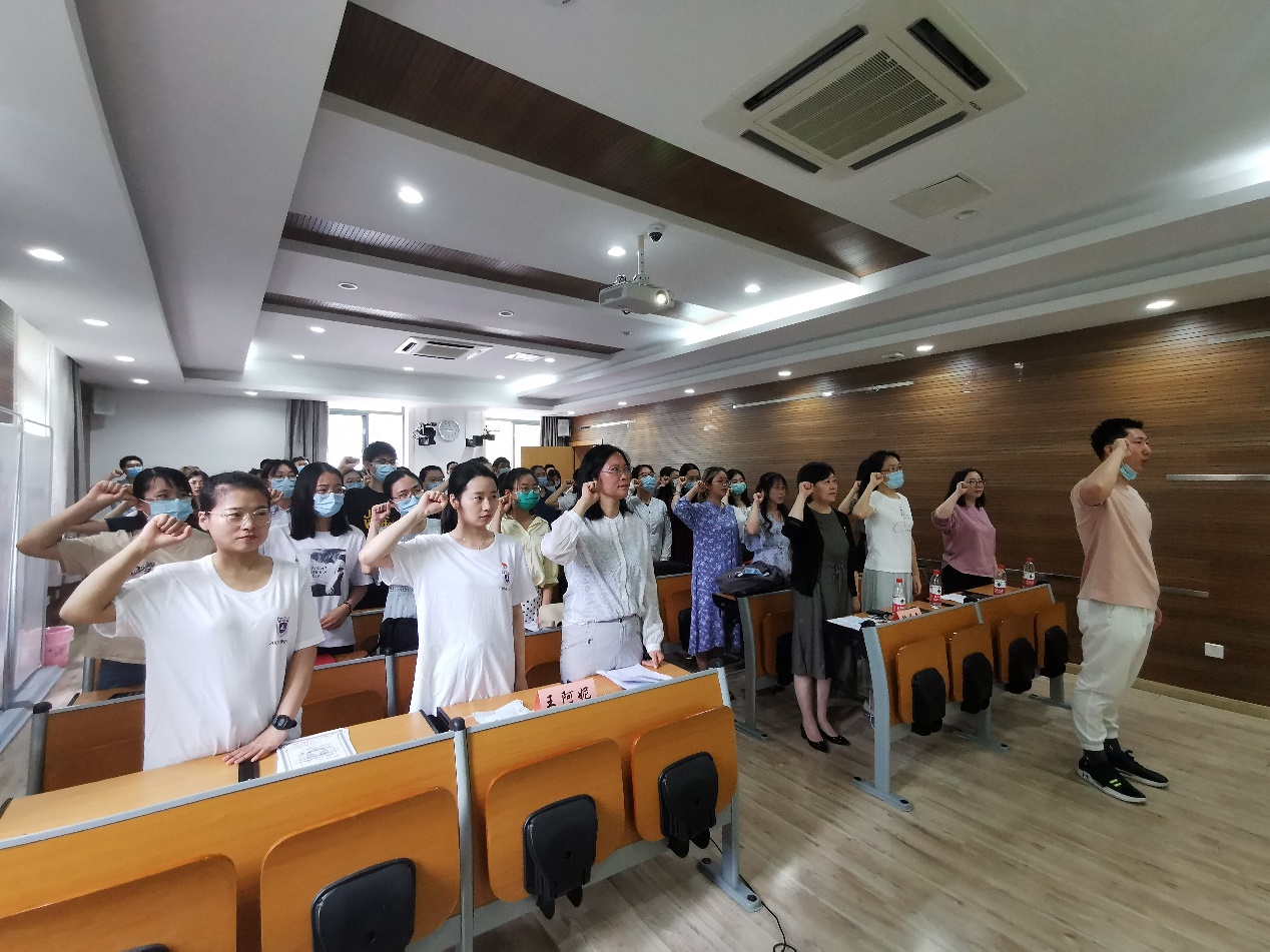 最后,在张楠的领誓下,全体党员共同重温入党誓词,表达了为共产主义事业奋斗终身的理想和信念。相信各位党员同志毕业后将坚定信仰,以南大人的荣誉感,以党员的责任感和使命感投身今后的学习和工作,不负母校的栽培,肩负起时代赋予的使命,为实现中华民族的伟大复兴而不懈奋斗。