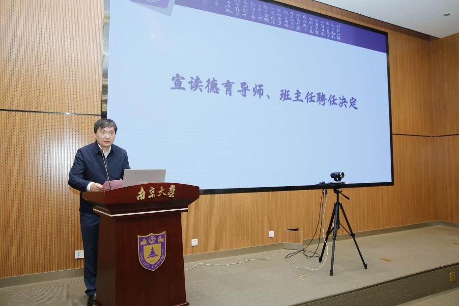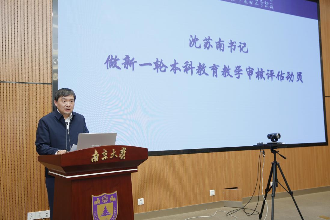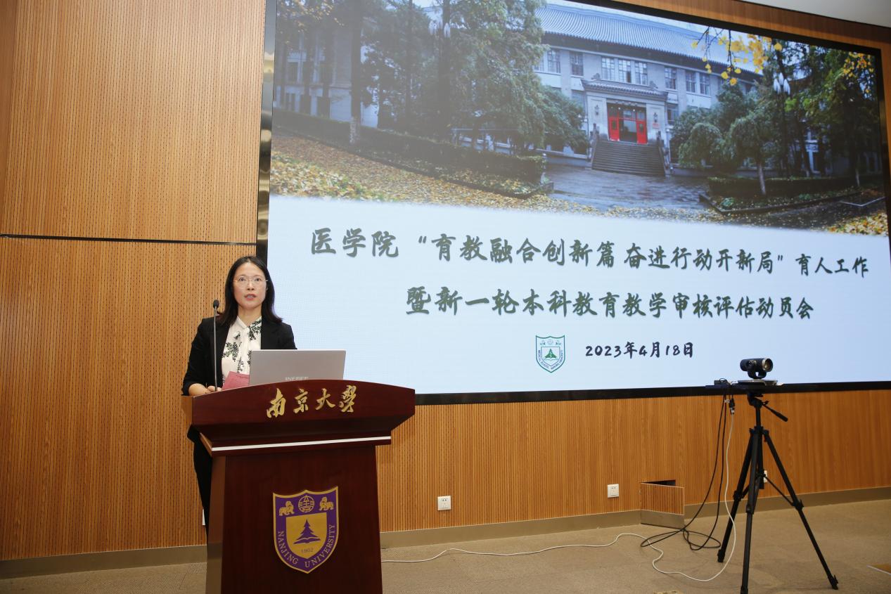 为全面贯彻落实党的二十大精神,贯彻落实习近平总书记给南京大学留学归国青年学者的重要回信精神,落实立德树人根本任务,深入开展习近平新时代中国特色社会主义思想主题教育,扎实推进“奋进行动”,医学院于4月18日举办“育教融合创新篇、奋进行动开新局”育人工作暨新一轮本科教育教学审核评估动员会。南京大学党委常委、副校长,医学院院长张峻峰、南京大学党委常委、党委研究生工作部部长、研究生院常务副院长周济林、本科生院教育教学发展与评估中心主任施林淼、南京大学医学院党委书记沈苏南、附属口腔医院党委书记王磊、附属鼓楼医院党委委员、副院长周敏、附属金陵医院(东部战区总医院)副院长干振华、附属鼓楼医院教育处负责人赵晓智、医学院附属金陵医院(东部战区总医院)教学办主任顾怀敏出席本次会议。参加本次会议的还有医学院全体辅导员、教学秘书、德育导师代表、班主任,各附属医院教育部门相关老师,学院部分学生代表。医学院党委副书记王阿妮主持本次会议。