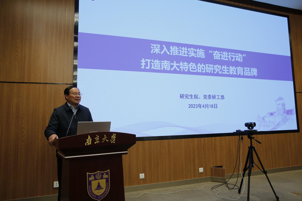 首先,张峻峰副校长介绍学校的“奋进行动”并对医学院的育人工作做指示。他深刻阐明了奋进行动“团结奋斗、争先进位、坐言起行、应势而动”的内涵,并从发展环境、总体要求、重要任务与举措以及组织实施四个方面系统解读了“奋进行动”的相关内容。结合“奋进行动”,对于医学院的育人工作,张峻峰指出:医学院要充分利用好各附属医院的优势,发挥好一线导师、教师、辅导员老师的作用,培育各个医院、各科科室的特色育人文化,建立建全不同路径、不同梯度的育人体系,将育人工作落实到每一位同学身上,建设具有南大医学特色育人体系,最终达成解决国家重要战略和服务社会发展、发出南大医学声音、讲好南大医学故事的目标。
