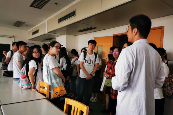 上午的开营仪式后,下午我们延续着鼓楼的特色,从历史、科研及临床三个方面将40名大学生分为3组,由神经内科部分研究生及医学院志愿者们带领大家分别参观了鼓楼医院著名的1892楼,神经内科、心胸外科等实验室,影像、风湿免疫等临床科室。各科的研究生志愿者们都以最大的热忱欢迎大家的到来,并向同学们介绍了各自实验室的研究方向及科研条件,之后也让大家感受了一下不同临床科室忙碌的工作节奏,以便为目前仍旧对自己专业选择迷茫的同学提供一个可能的方向。