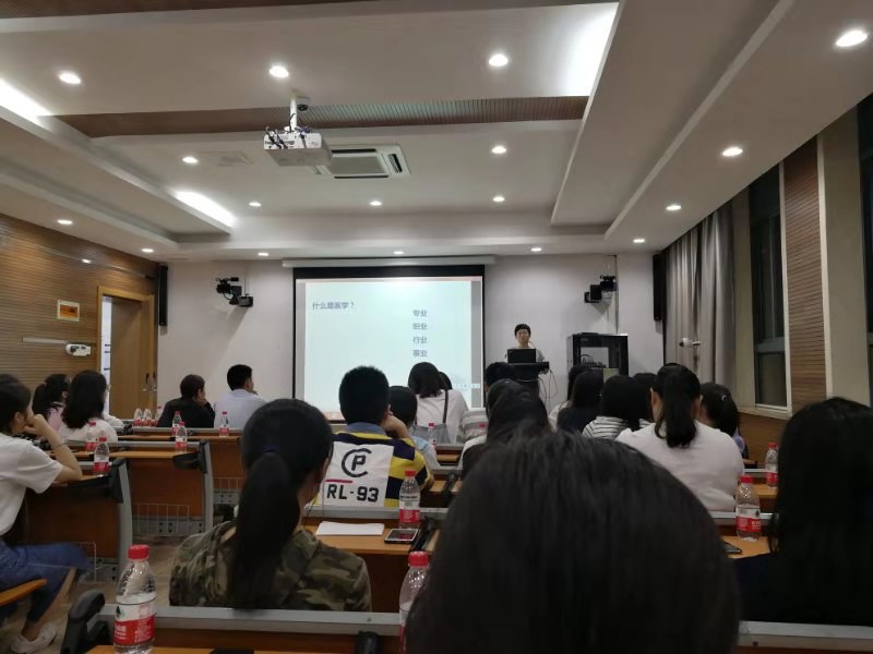 7月12日报到当天,虽天公不作美,然瓢泼大雨并未削减营员们的热情,晚上七点,40名优秀大学生齐聚医学院东南楼,准时参加由医学院党委副书记王阿妮老师主持的医学院优秀研究生志愿者互动交流会。交流会期间,南京大学医学院优秀毕业生代表、附属鼓楼医院消化内科副主任医师刘文佳博士分享了自己18年的从医经历。她说医学既是我们所攻读的专业、是我们赖以生存的职业,也是一个救死扶伤的行业,更是维护人类健康肩负崇高使命的事业,其谆谆教诲引起了与会者的强烈共鸣。随后,2018届毕业生代表、江苏省委组织部选调生赵健博士分享了他在南大的求学历程,勉励同学们勇攀医学高峰,并以自身经历鼓励同学们开拓思维,个性化的选择职业。最后,由18级研究生代表、附属金陵医院神经内科研究生张翰弘同学为营员们介绍了南京大学医学院的生活和学习情况。