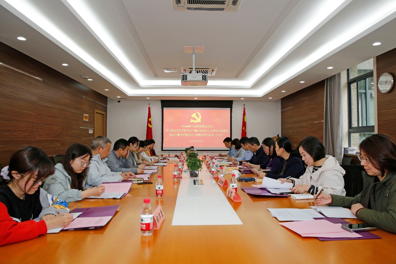 最后,沈苏南对主题教育活动进行了再部署,并对具体工作安排提出了要求。他指出,要在“以学铸魂、以学增智、以学正风、以学促干”方面取得实实在在的成效,最终实现“学思想、强党性、重实践、建新功”的总要求,为全面建设“第一个南大”提供坚强思想政治保障,以南大式奋进谱写新时代医学院建设新篇章。