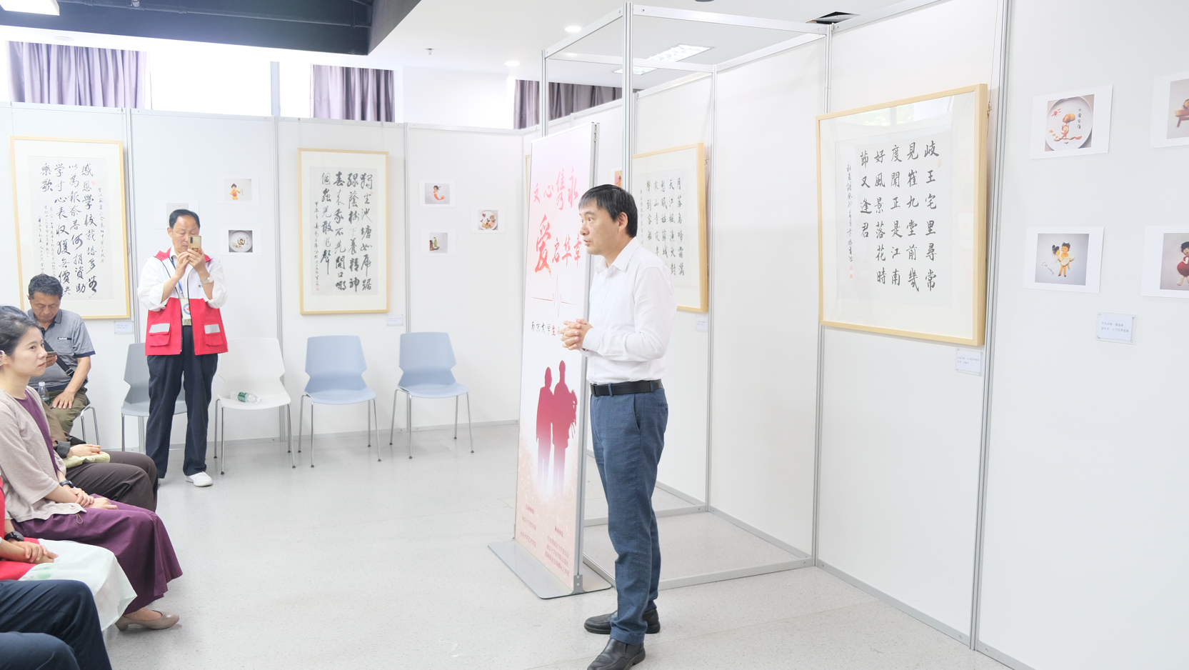 5月25日,由南京大学志爱社发起的“文心隽永,爱启华章”:南京大学生命美育展在南京大学鼓楼校区开幕。本次展览由南京大学医学院、南京大学艺术学院和共青团南京大学委员会共同举办。南京大学医学院党委书记沈苏南,南京大学艺术学院教授祁林,南京市红十字会捐友协会常务副会长高珊珊,南京大学团委副书记王维嘉,以及各区捐友代表出席了此次活动。开幕式由医学院解剖学教研室主任张露青主持,南京大学医学院志爱社负责本次展览的全程志愿服务,郑钢基金会南播玩工作室对仪式进行了直播。