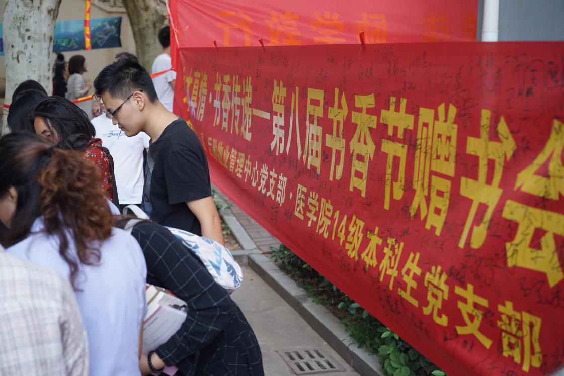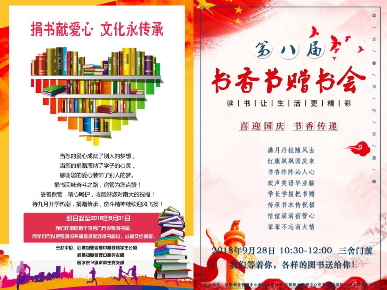 金秋送爽,书香绵延。2018年9月28日上午,由南京大学后勤物业管理中心鼓楼学生公寓、后勤物业管理中心党支部和南京大学医学院2014级本科生党支部联合共建的第八届书香节赠书会在南京大学鼓楼校区南园三舍前成功举办。