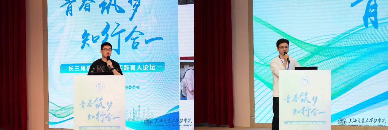 王阿妮参与圆桌交流互动,并就如何增强新时代医学生实践活动实效的话题发表观点。她谈到,医学生社会实践项目要充分聚合实践育人资源,遵循学生成才规律,依托所学医学专业,赋能学生成长成才。在长三角高校大健康实践育人分论坛中,南悦乡村支教团负责人顾宫铭和高政就“南星闪耀,悦者来之”暑期乡村中小学生命健康主题夏令营分别向大会作汇报和经验分享。