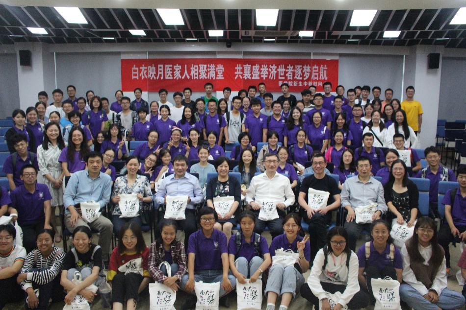 医学院的领导和各位老师都从鼓楼赶到仙林为入学不久的20级新生送上了节日祝福,并表达了对新生们的鼓励与殷切希望。前来送上祝福的医学院领导与老师有:南京大学党委常委、副校长、医学院院长张峻峰老师,南京大学医学院党委书记韩晓冬老师,南京大学医学院副院长蒋青、沈苏南、王宏伟和王婷婷老师,党委副书记王阿妮老师,办公室主任应锋老师,团委书记兼15、16级辅导员陈笑夜老师,基础医学教学中心的马原超老师。活动由医学院19级辅导员吴科主持。